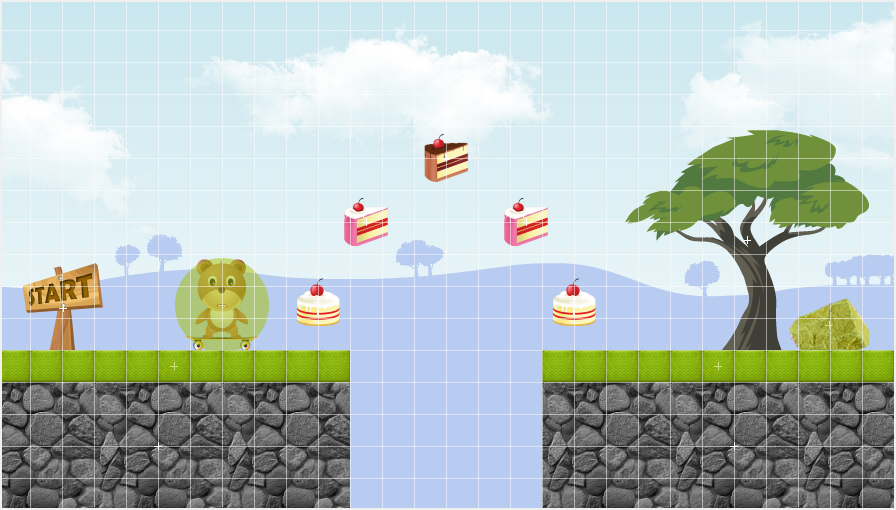 Here is an example of a simple game scene, that was created via Hillmix. Highlighted properties used to configure workspace when you open a project. All else contains layers and objects with their properties. To make file smaller Hillmix saves only properties of objects which differs from the default properties.